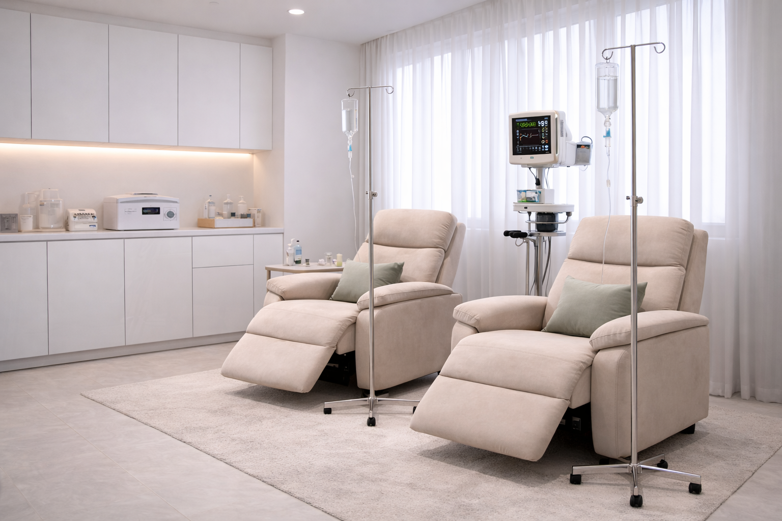 - Еще одно преимущество — возможность экстренной помощи в случае непредвиденной реакции. Хотя серьезные побочные эффекты возникают редко, наличие медицинской команды и необходимых препаратов на месте дает пациенту дополнительную уверенность в безопасности процедуры.